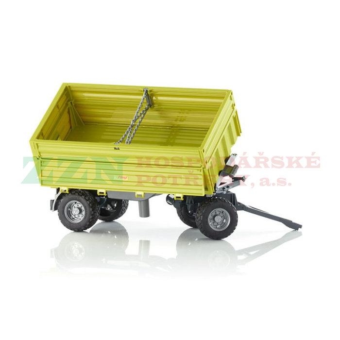 Sklápěcí vůz Fliegl je báječným doplňkem k modelům značky Bruder. Kompatibilní je s traktory z Profi série a nabízí mimořádně promyšlené a zábavné funkce. Lze jej naklánět do obou stran i dozadu, a stejně tak lze vysypávat materiál pomocí otevíracích bočnic. Tažná tyč je navíc plně otočná, vůz disponuje i zadním závěsným zařízením pro připojení dalších modelů.