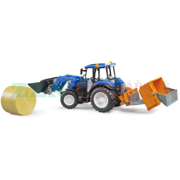BRUDER 2187 Traktor New Holland T5.120 s čelním nakladačem, korbou a vidlemi