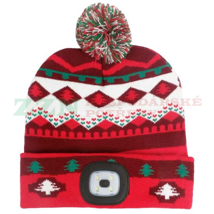 Čepice X-MAS červeno-hnědá L je praktická zimní čepice s výrazným sezónním designem a integrovaným LED světlem.