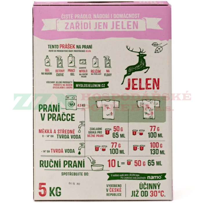 • V měkké vodě pere JELEN lépe. Pro změkčení vody použijte přípravek NAMO.