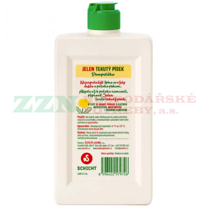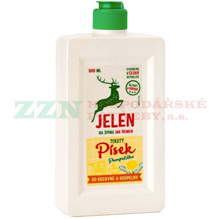 • Abyste už k potoku nemuseli, připravil Jelen tento tekutý písek, který si hravě poradí s každou nečistotou, mastnotou i vodním kamenem.