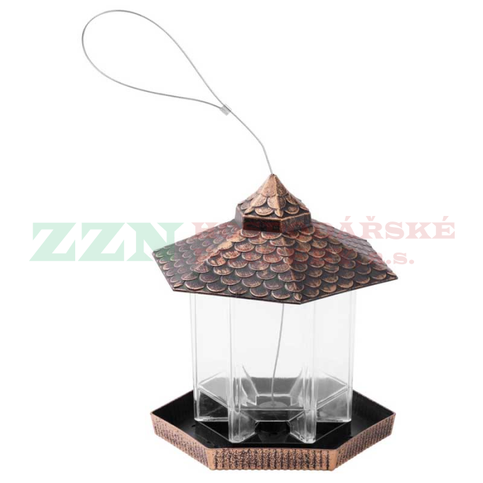 Krmítko je vybaveno stříškou, která chrání ptáčky před sluníčkem deštěm.