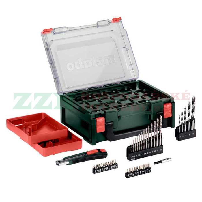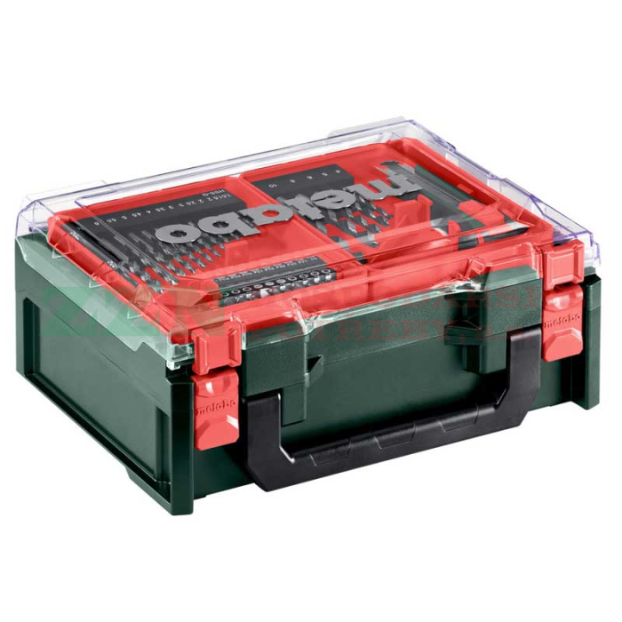 Profesionální aku vrtačka s příklepem a mobilní dílnou o 41 kusech nářadí v plastovém kufru.